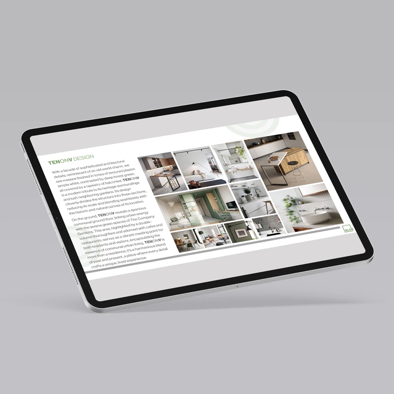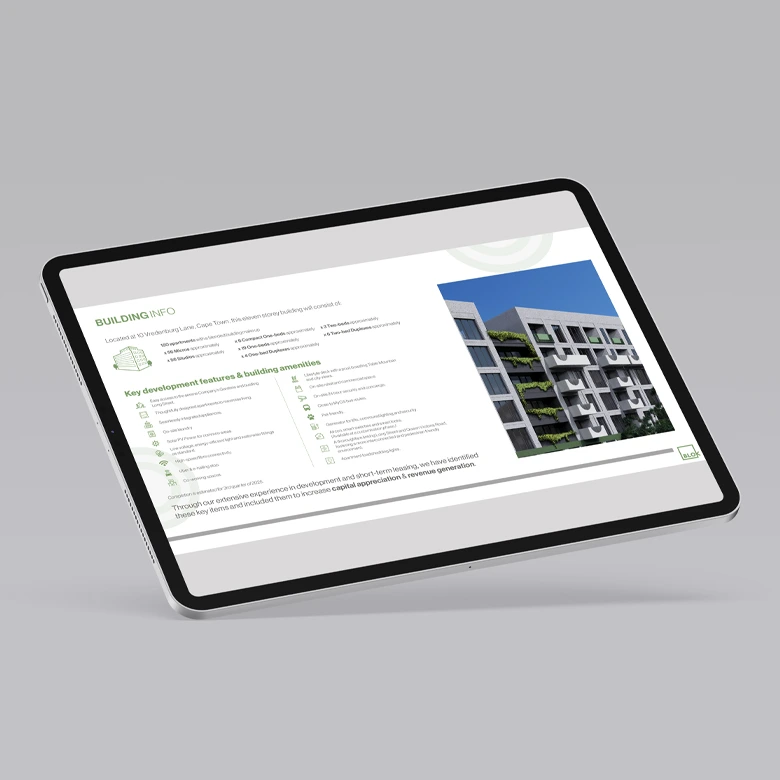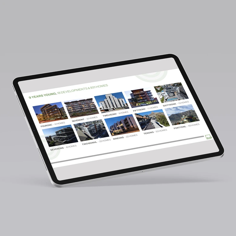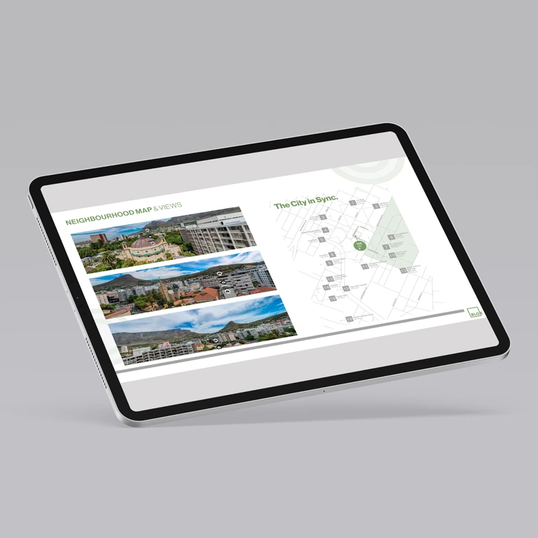 Project Description: As Blok has grown, the requirements for development campaigns has evolved with it from the traditional print to digital. The TENONV CoInvestor was created as a digital brochure that can be sahred over email and was part of the Investor pack for thedevelopment’s launch. These are some of the slides that featured in the 35 page presentation. Medium: Digital Dimensions: Presentation format