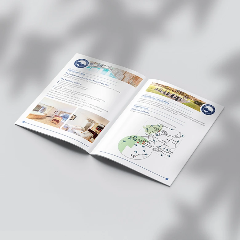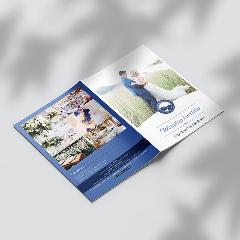 Project Description: A Wedding Portfolio for Glenburn Lodge & Spa to assist the wedding co-ordinators when working with event planners or brides that are planning their weddings. The brochure provides essential information on the property’s facilities and features for hosting weddings. Medium: Print – saddle-stitched Dimensions: A5 Portrait